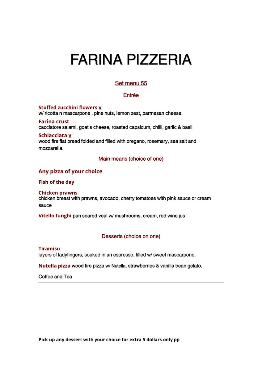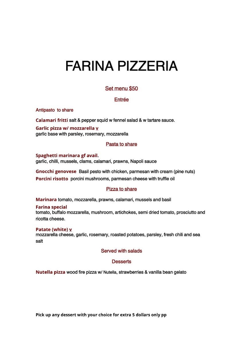 Farina Pizzeria Waitara Menu